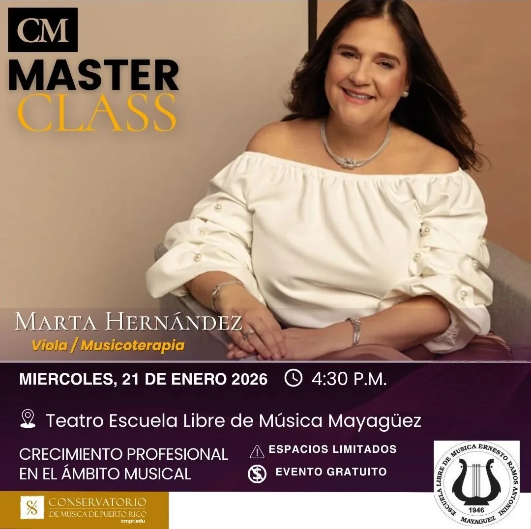 La Fundación para las Artes Musicales de Mayagüez te invita a participar de la master class Crecimiento Profesional en el Ámbito Musical, un espacio formativo diseñado para explorar las posibilidades de desarrollo artístico a través de la viola y la musicoterapia. Esta experiencia ofrecerá herramientas valiosas para músicos, estudiantes y educadores interesados en ampliar sus conocimientos y enriquecer su práctica musical.